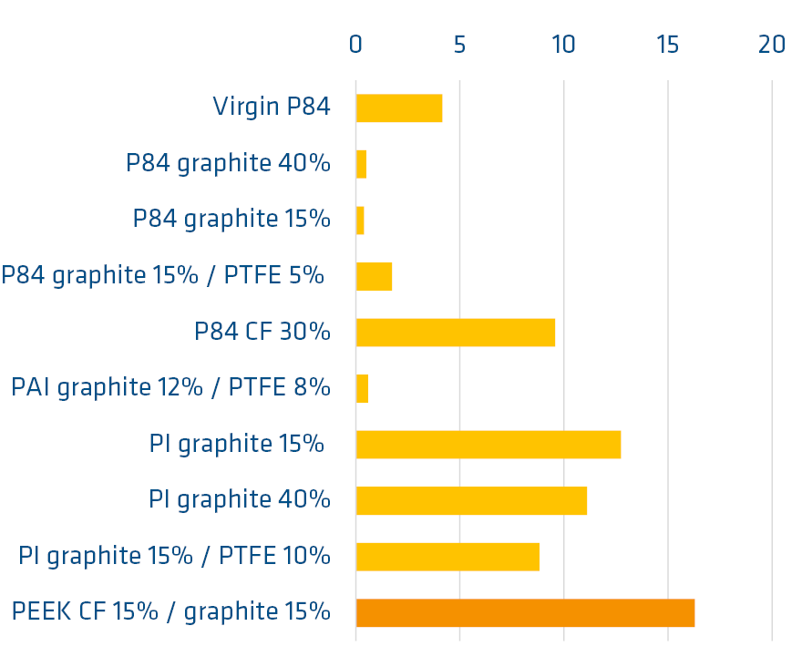 Basisharz: TECAPOWDER PI HCM gelb, 325 mesh, Füllstoff 15 % Graphit und 5 % PTFE