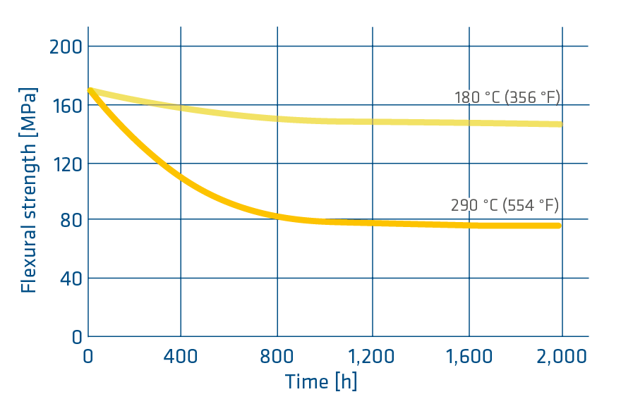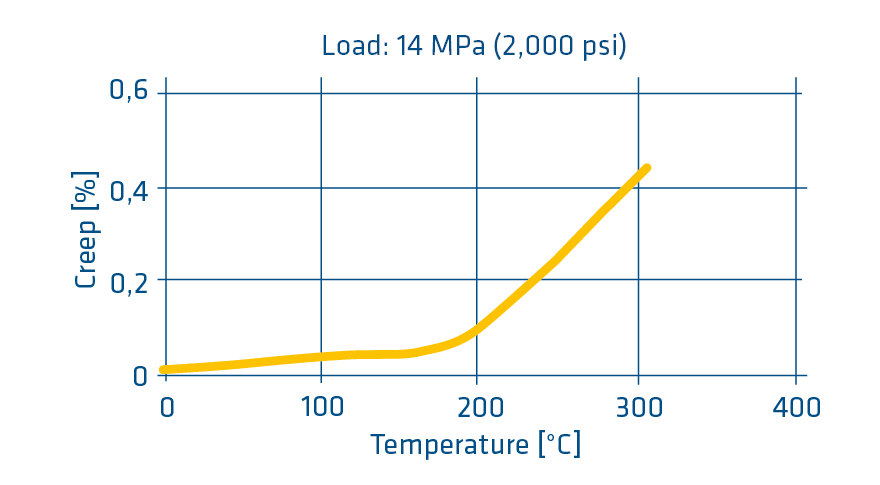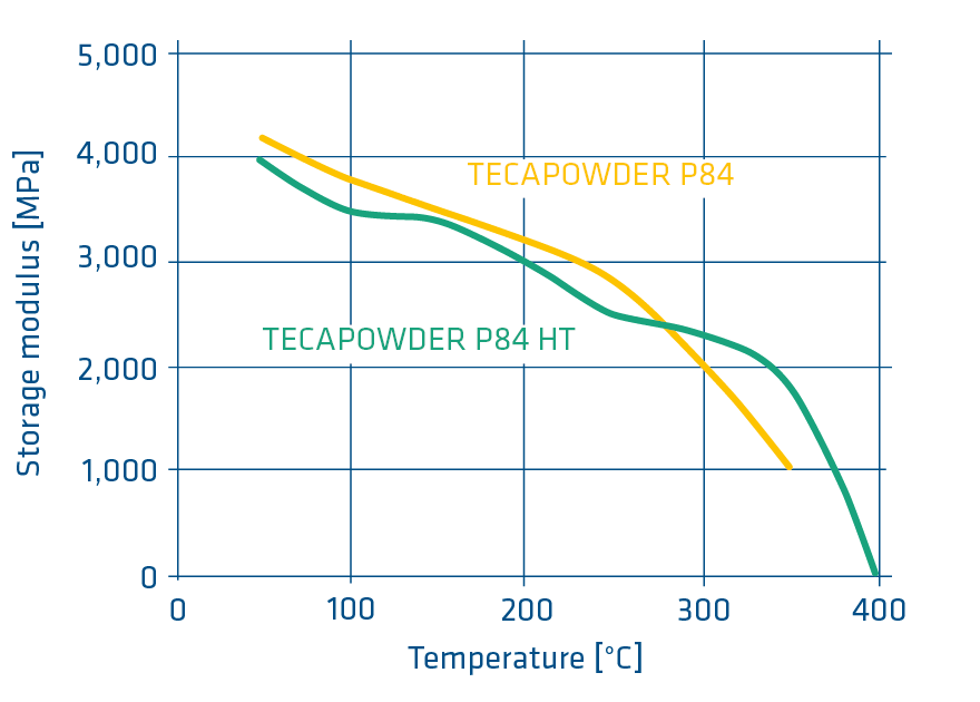 TECAPOWDER PI hat eine ausgezeichnete thermische Langzeitstabilität. Aufgrund der hohen Glasübergangstemperatur behält es seine Dimensionsstabilität und Biegefestigkeit auch bei hohen Temperaturen. Das Kriechen unter Last bei hohen Temperaturen ist ebenfalls ausgezeichnet.