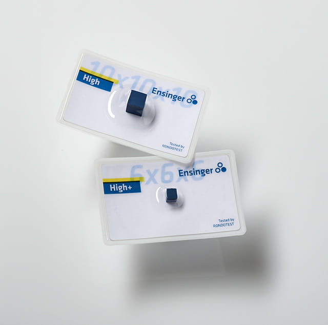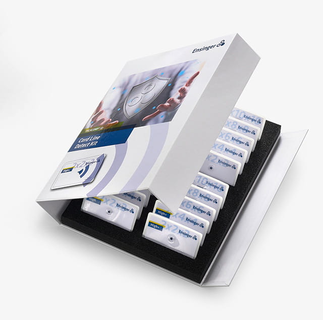 Um die tatsächliche Detektierbarkeit im realen Prozess mit realen Produkten testen zu können haben wir den Detect Kit entwickelt. Auf den Karten sind verschiedene Kombinationen aus Partikelgröße & Füllgrad dargestellt.