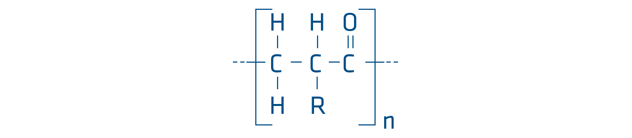 Die Molekularstruktur des PK Polymers ermöglicht einen hohen Kristallisationsgrad. PK Material besitzt daher eine außergewöhnlich hohe Zähigkeit, eine gute Verschleißfestigkeit sowie eine sehr gute chemische Beständigkeit. Das reine Kohlenstoffgerüst sorgt zudem für eine ausgezeichnete Hydrolysebeständigkeit.