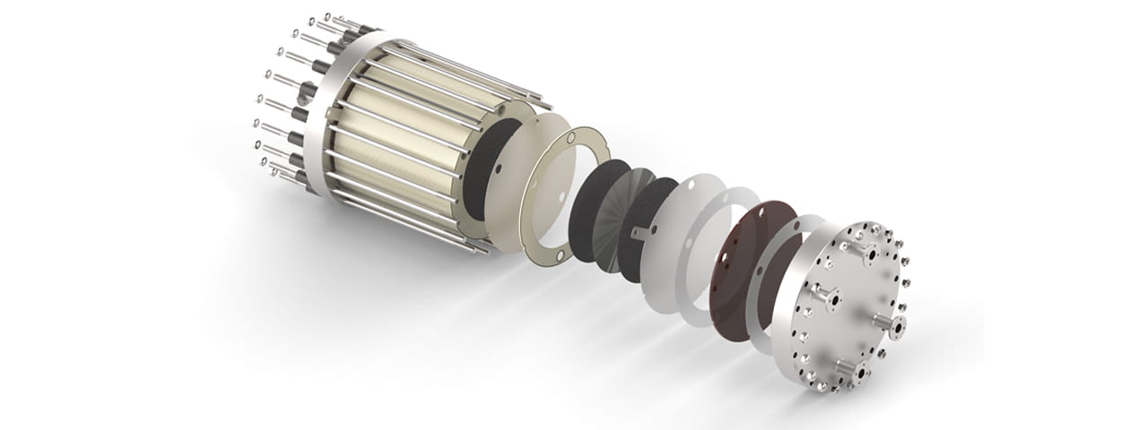 Bipolar plates are central components in electrolyzers. They serve as an electrical connection between the individual cells of an electrolyzer stack and enable the flow of electrons through the cells. They conduct the electric current, distribute the reaction gases evenly across the electrodes, and remove the resulting water and other products. Bipolar plates can be made of metals, graphite or special polymer-graphite composites. Pure graphite plates are traditionally widely used due to their excellent electrical conductivity and corrosion resistance. However, they are brittle and relatively expensive. Metallic bipolar plates are often made of stainless steel or titanium and coated with a corrosion-resistant layer to increase their service life. These plates offer high conductivity and mechanical strength, but are more expensive to manufacture.