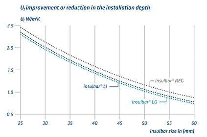 Depending on the original system, a switch to insulbar LI makes it possible to reduce the Uf values by around 0.1 W/m2K. Existing window systems can therefore easily be thermally improved through a switch to insulbar LI and/or be offered in additional variants with different Uf values – without further system or process changes.