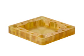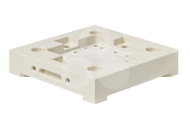 Fiber reinforced plastics and injection molded plates tend to contain residual stresses that cause warpage and deformations while machining, thus making it difficult to realize small geometries with tight tolerances. The filler system and extrusion molding method of TECAPEEK CMF allows residual stresses to be significantly lower than fiber reinforced plastics or injection molded materials. For parts requiring higher temperature resistance, Ensinger's polyimide TECASINT are produced with compression molding, also offering very low level of residual stresses. Consequently, better dimensional stability and reduced deformation while machining enable smaller pitches and higher hole position accuracy. For parts besides the contact plate, such as body parts, where micro hole machining is not required, Ensinger’s glass fiber reinforced materials can be a cost-efficient option.
