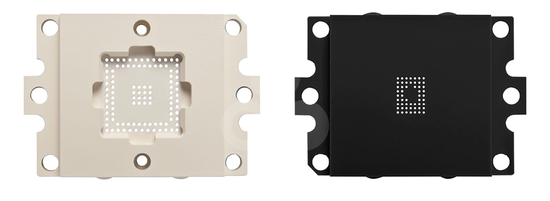 The material properties also have an influence on the dimensional stability, as water absorption and thermal expansion can cause part deformations. Ensinger's TECATRON PPS, TECAPEEK, and TECAPEI plastics for test sockets offer low levels of water absorption, while materials with higher water absorption like PAI and PAI GF30 can cause issues in tight tolerance alignment. For higher temperature applications, the special polyimide type TECASINT 4011 and in particular TECASINT 4111 offer lower water absorption than industry standard polyimide, opening up new design possibilities for high temperature test sockets.