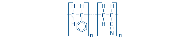 SAN polymer, with the chemical name styrene-acrylonitrile copolymer, is a versatile plastic that is characterized above all by its excellent transparency and chemical resistance. In addition, it has high stiffness and good dimensional stability which allow it to be used in demanding environments.