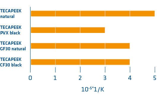 El PEEK natural sin aditivos es el material más equilibrado en ambientes de alta temperatura, donde se requiere un deslizamiento sin lubricación y sin contaminación. Aún así, muchas aplicaciones requieren grados especiales de PEEK para los cojinetes como el TECAPEEK PVX black, con formulaciones de aditivado múltiple (grafito, fibra de carbono y PTFE) para cumplir con una amplia gama de requisitos: