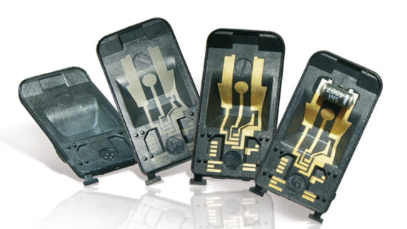 Az Ensingernél speciális hőre lágyuló anyagokat fejlesztettünk ki háromdimenziós elektronikus alkatrészekhez (3D MID), amelyeket az LDS-eljárásra optimalizáltak. A molded interconnect devices (MID) áramköri nyomvonalakat és elektromos áramköröket integrálnak közvetlenül a háromdimenziós műanyag alkatrészekbe.