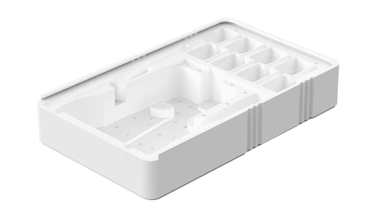 A sebészeti műszerek, valamint a csavarok és egyéb implantátumok szállítására és tárolására szolgáló tálcák és tárolók olyan szigorú követelményeknek felelnek meg, mint a könnyű szállítás a sterilizálhatóság és a hosszú élettartama. Ezen követelmények alapján a TECAPRO MT (PP) és a TECASON P MT (PPSU) anyagok optimális megoldást jelentenek.