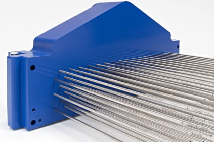 Foto 2: Esempio applicativo realiizato in TECAFORM AH blue - blocco ad aghi per la lavorazione delle carni - foto di Ensinger GmbH