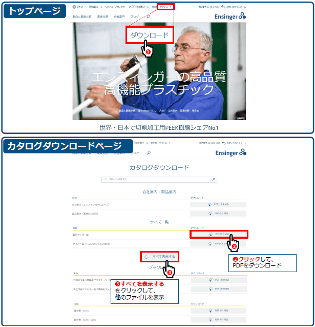 例えば、会社案内、製品案内、サイズ一覧、データシート、SDS、証明書(RoHS、REACH)などが入手可能です。