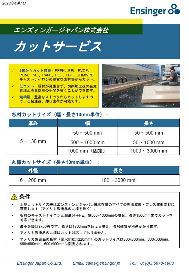以下の形状とサイズでキャストナイロン素材を販売しています。