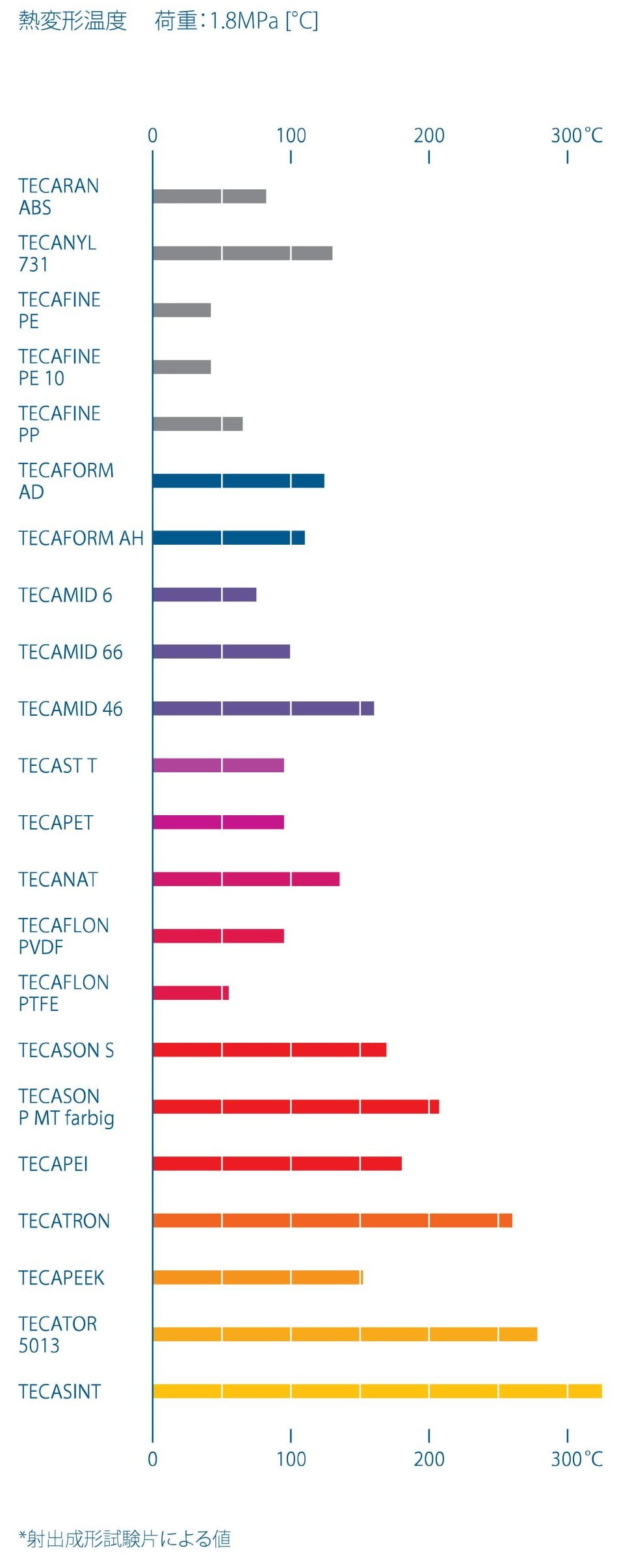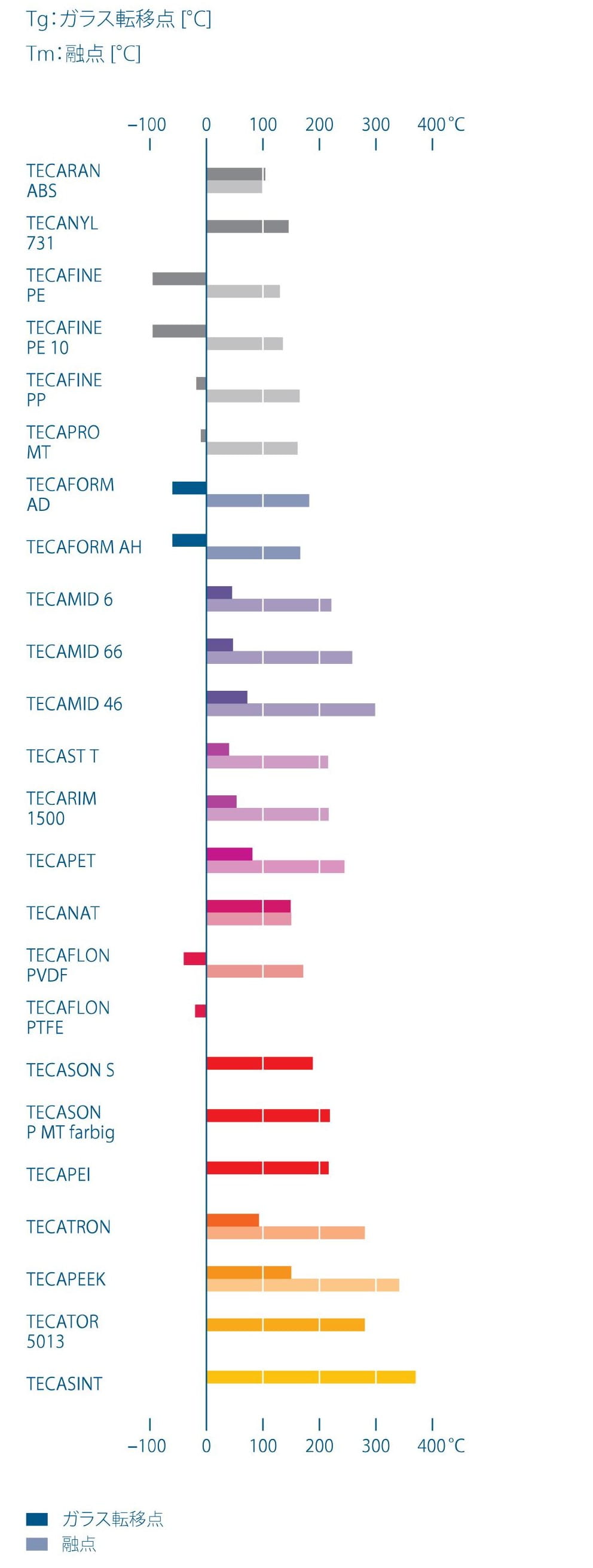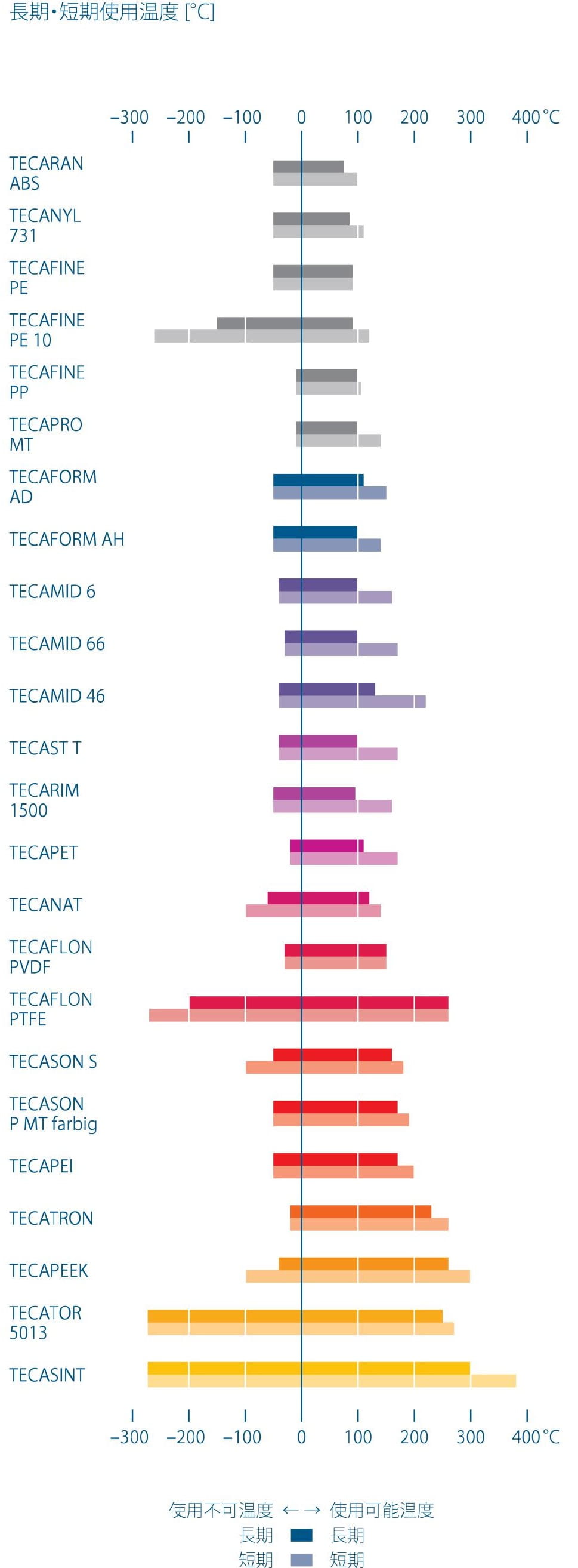 (long-term: 長期耐熱温度、short-term: 短期耐熱温度)