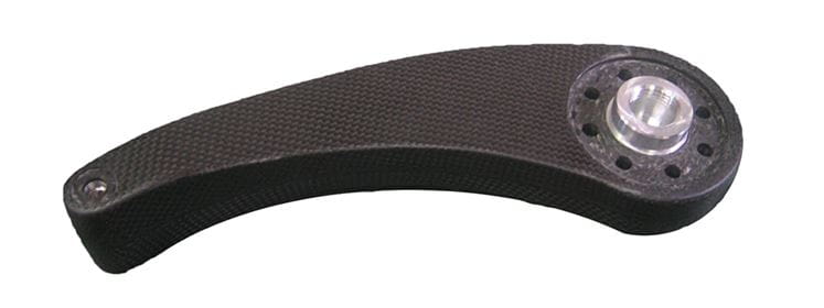 탄소섬유 복합재 부품(이경우는 에폭시에 직조된 탄소 섬유가 포함)은 중량과 관성을 감소시키도록 설계 및 생산되며, 고품질의 금속 합금이 제공하는 높은 수준의 기계적 특성을 가집니다. 복합재의 주목적 중 하나는 경량화이지만, 다른 기계부품에 연결하기 위해서는 보통 금속소재 (철강, 알루미늄 또는 티타늄)를 인서트하는 과정이 필요하기 때문에 이 경우 부분적으로 탄소섬유의 이점이 줄어들기도 합니다.